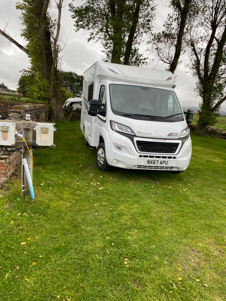 After a failed attempt to put the new bike cover on the bikes we set off with naked bikes. A decent trip across the a66. I amused myself by waving to fellow motorhome drivers …. Most people will cheerfully wave back however 5 people in a row did not return my waves… rude!