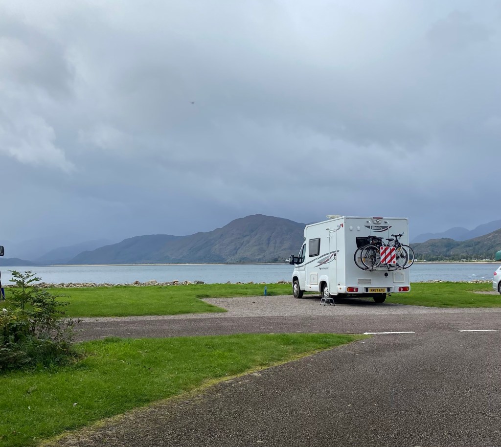 We were heading for Bunree Caravan and Motorhome club site. We resisted the chance to have a lovely stop at Glen Coe to get to the site to try and get a good pitch. It was worth the 40 minute wait for the wardens to let us in.