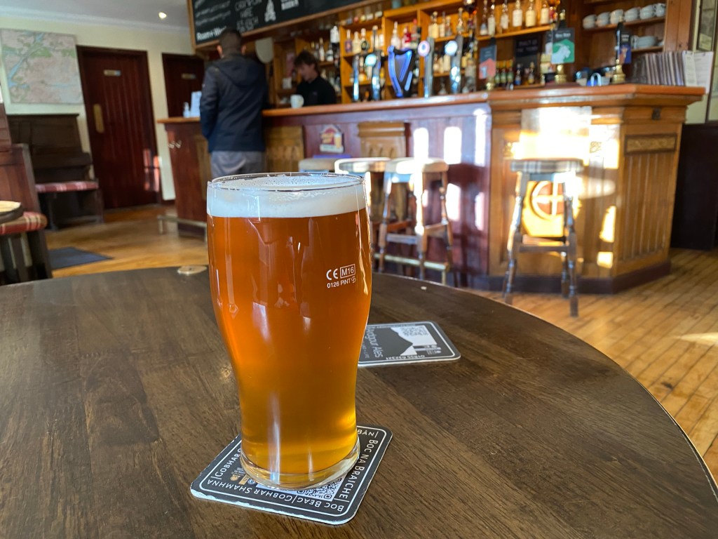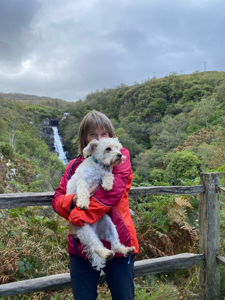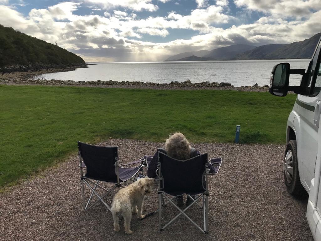 We set off for a little joglet partly to suss out where we were heading on today’s planned walk. On our run we spotted what might be a bar for later. We returned to the site after 30 minutes of of running (me) , sniffing and weeing (Ernie). We were in time for me to do the joys of waiting for Ashes tickets to go on sale. Whilst waiting we enjoyed the view from the van. It would be easy to spend hours watching the sun and cloud casting changing light onto the glorious mountains. Would be even nicer to do this sitting outside the van but it was a bit chilly in the wind this morning.