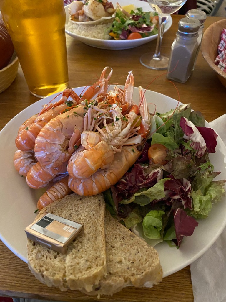 After a lovely shower and rest we headed to the wonderful Applecross Inn for our evening meal. Fresh sea food…. Superb…. My langoustines had only swum ashore under an hour before we arrived. Pat’s scallops were soooo tasty. Just wonderful.