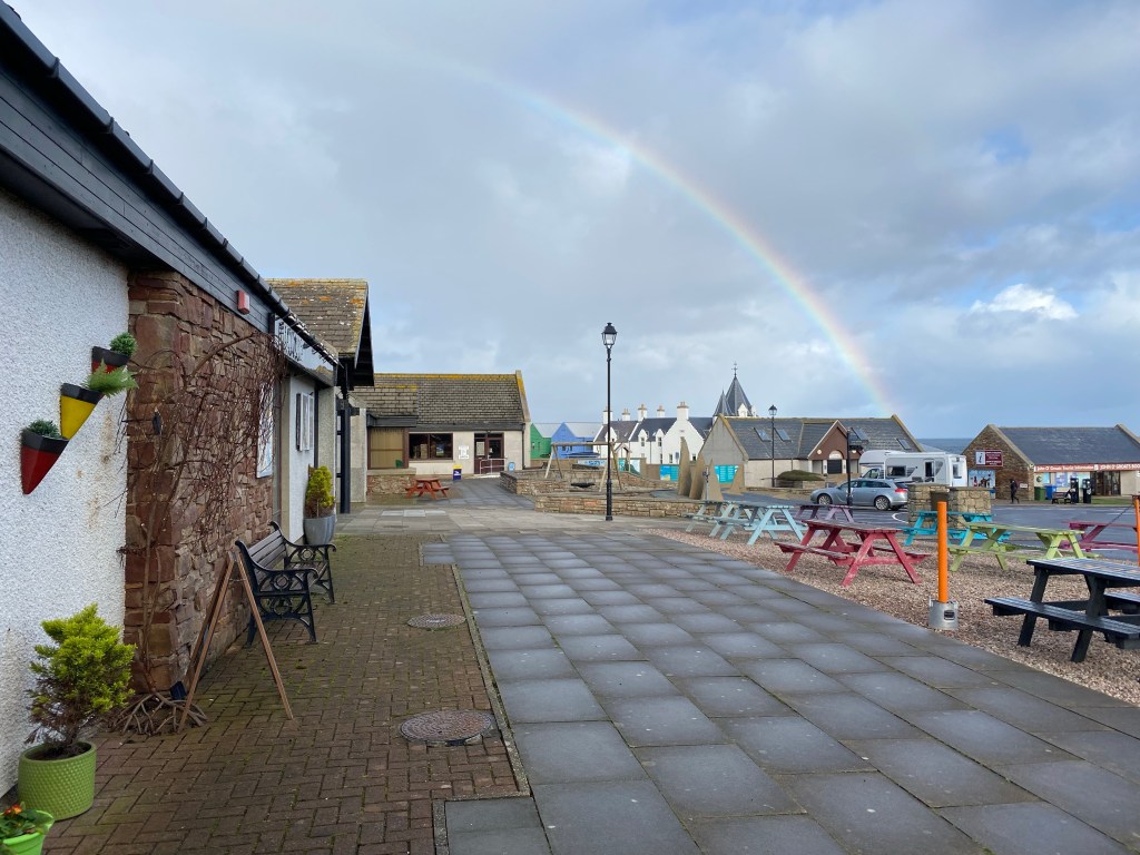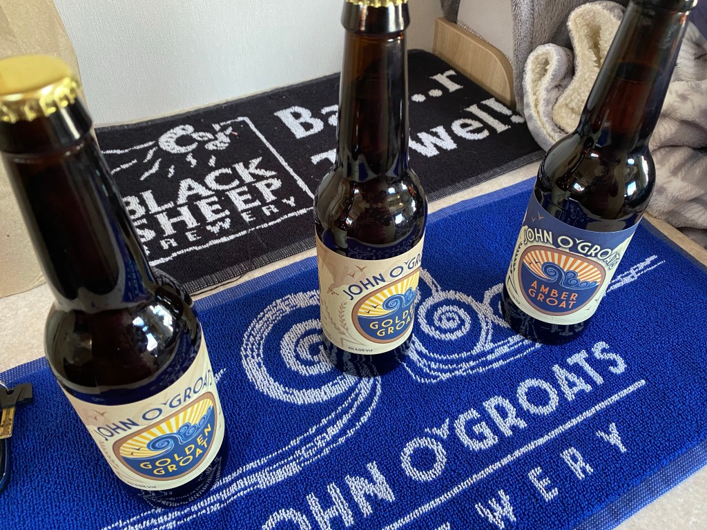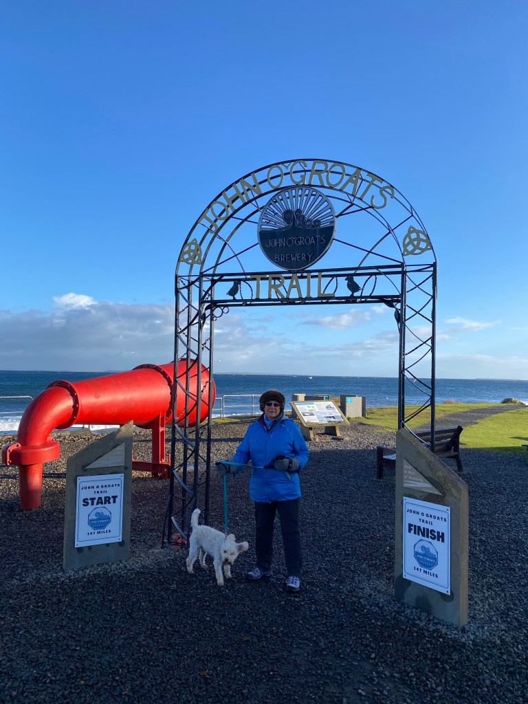 We decided we would be proper tourists for the morning and set off quite early to go to John O’Groats. It was a short drive along the coast and at the time of day we went it was lovely. We can imagine it would get very very busy at certain times of day. We had to do the obligatory photo at the sign though Ernie was not impressed
