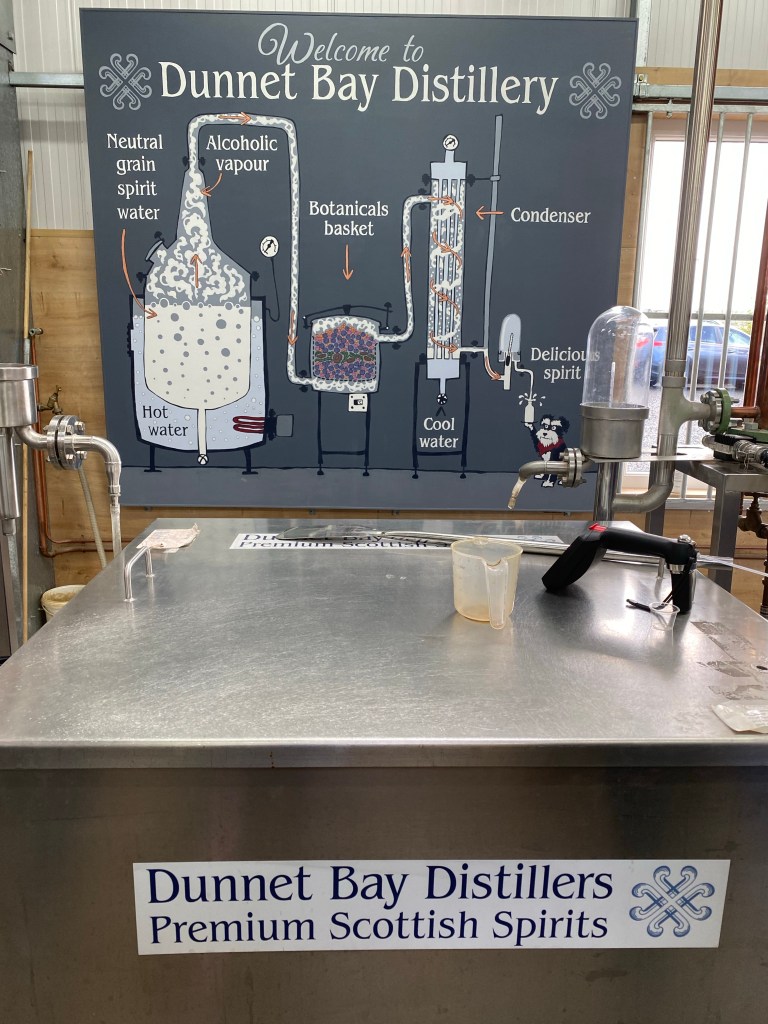 We headed back from John O’Groats and had a walk in the community forest with Ernie as we were leaving him for a while this afternoon. We got our glad rags (clean socks) on and headed up the road to the Dunnet Bay distillery. We nearly managed to avoid the rain.