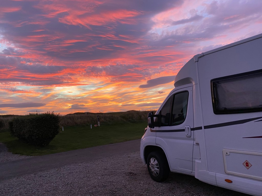Anyway that song sprung to mind when we did an early morning opening of the blinds for a weather check. Morning had certainly broken. It was one of the most spectacular sunrises I think I’ve ever seen. I went rushing out of the van in my PJs. It was stunning and these photos don’t do it justice.