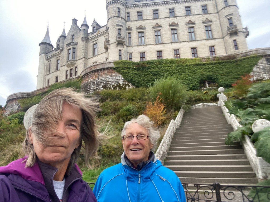 The photos don’t really do it justice. Morning had certainly broken and will live long in the memory. After a spot of breakfast we headed down the coast to Dunrobin Castle. We were looking forward to seeing the castle and also their famous falconry display. Poor Ernie wasn’t allowed in the castle, and to be honest he is still a bit upset about people laughing at him in his grow-bag yesterday. So he had some quiet time in the van whilst we headed down to the castle. It was interesting to wander around a fraction of the rooms, apparently there 189 rooms in the castle but only a small amount available to visitors. When I went to pay, I asked what age was considered a senior. 60 came the reply, so I asked for 2 senior tickets. I thought he may say ‘no way you’re 60’ however he didn’t so I had to comfort myself that whilst I may look ancient I had saved £2.